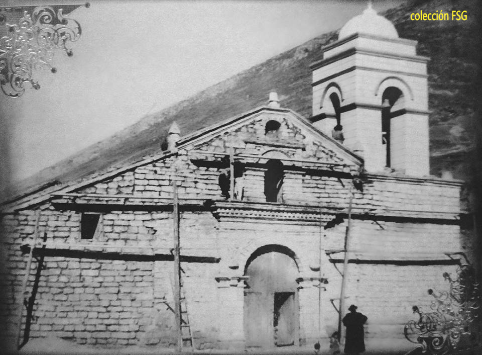 Esta foto corresponde alrededor de 1880, antes que se produjeran los deterioros monumentales de inicios del siglo XX. Inició su construcción Fray Domingo de Montenegro al llegar a la Villa de Oropesa en 1590.