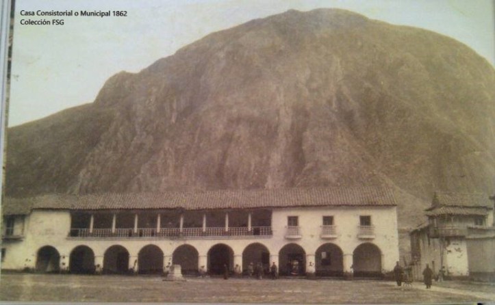 Vista del Ayuntamiento Municipal. El Majestuoso Potocchi completo. La foto es tomada en época republicana antes de 1862, ya que todavía no está la pileta en la plaza.