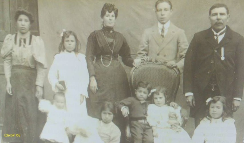 En la foto: Jósé M. Ortiz, María Iparraguirre y sus hijos: José, Livia que se casó con el señor Quintanilla; Rosa que se casó con el sr. Patiño; Aurora quien se casó con don Humberto Schaefer y Carmen, quien contrajo matrimonio con David Blanc.