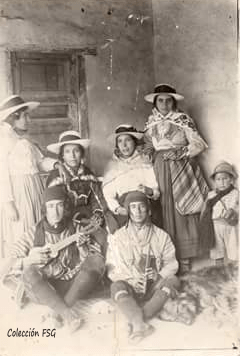Antigua fotografía de una familia paucarbambina listo para los carnavales. La toma data aproximadamente a los años 1920 – 30. Es curioso notar que el atuendo difiere en demasía con las formas de vestir en la actualidad; esto obedece a las relaciones comerciales que se mantenía, necesariamente. En la foto se aprecia el estilo huamanguino, hoy invade casi el estilo huancaino.