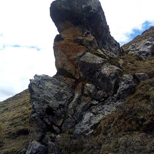 El TAYTA WAMANI, dejando su faena inconclusa, se escabulló por el pequeño hoyo, que está en el pectoral del pétreo macho. Los campesinos dicen. _ En la mala hora… Por ese huequito sale es espíritu de TAYTA WAMANI, cabalgando en una vizcacha de una oreja mochada.